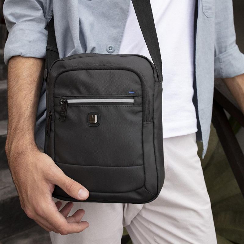 Bandolera con 2 compartimentos color gris oscuro y detalle reflectante en la cremallera. Fabricada con poliéster resinado y libre de plásticos PVC. Medidas: 20x25x8 cm. MEDIDAS 20x25x8 PESO 0.32 kilos VOLUMEN 7.00 Litros