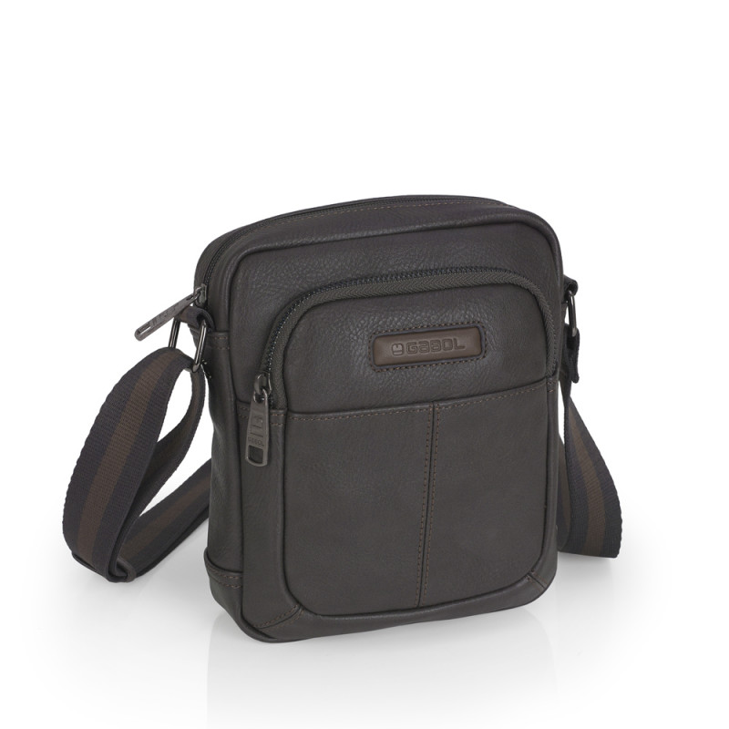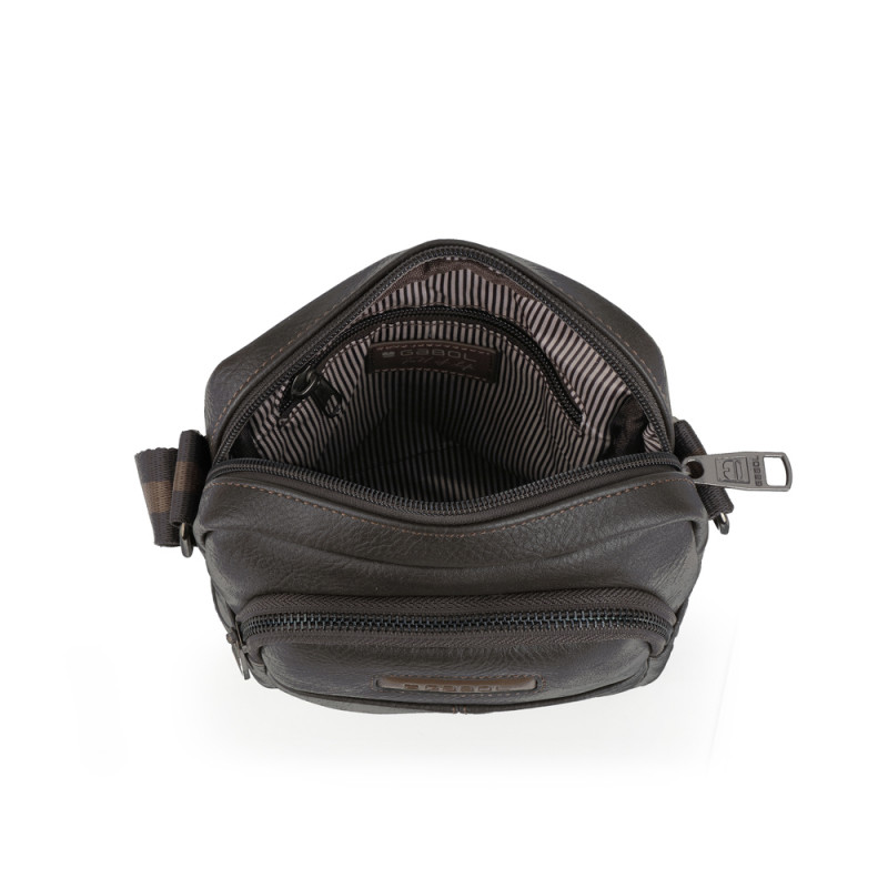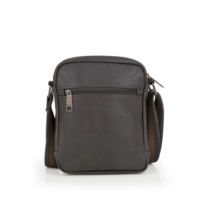 Bandolera cruzada Frank de piel sintética, marrón. Libre de plásticos PVC. Medidas: 17x20x6 cm