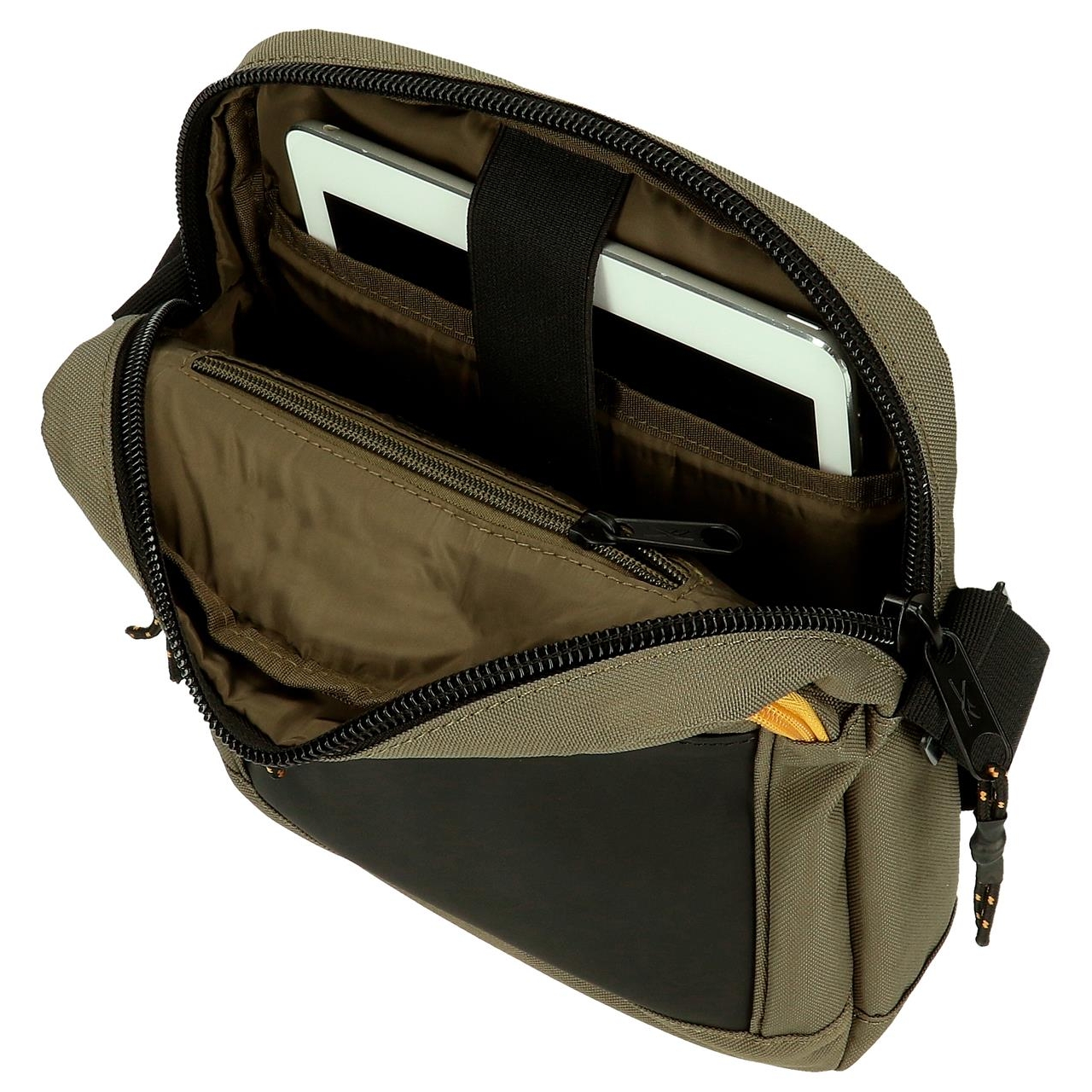 Bandolera de 22 cm x 27 cm x 10 cm fabricada en poliéster.