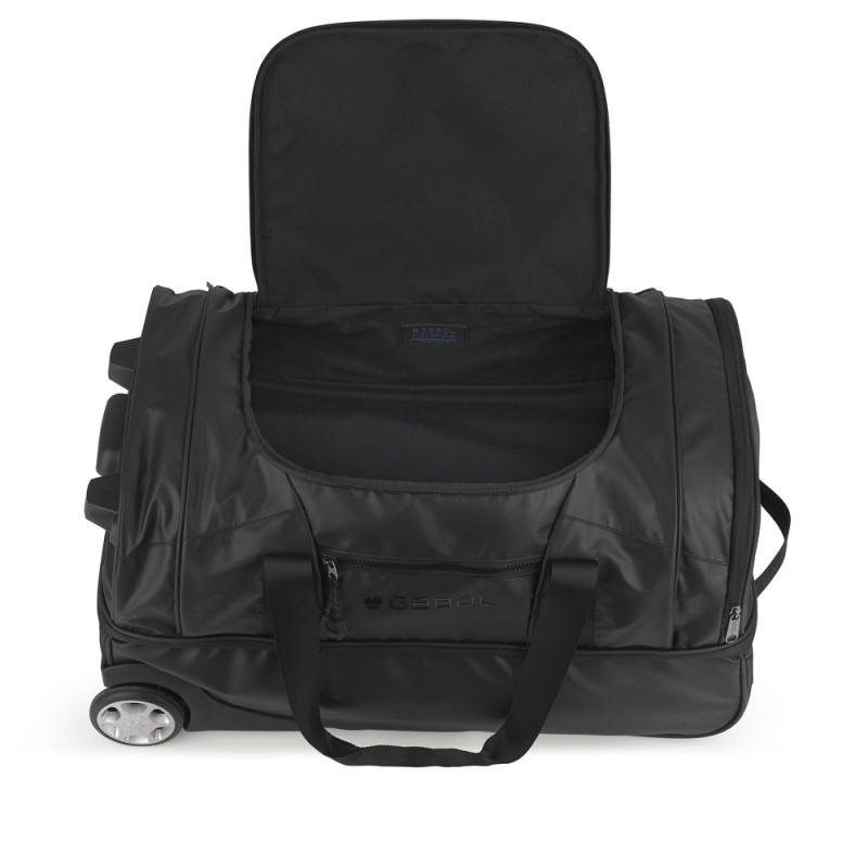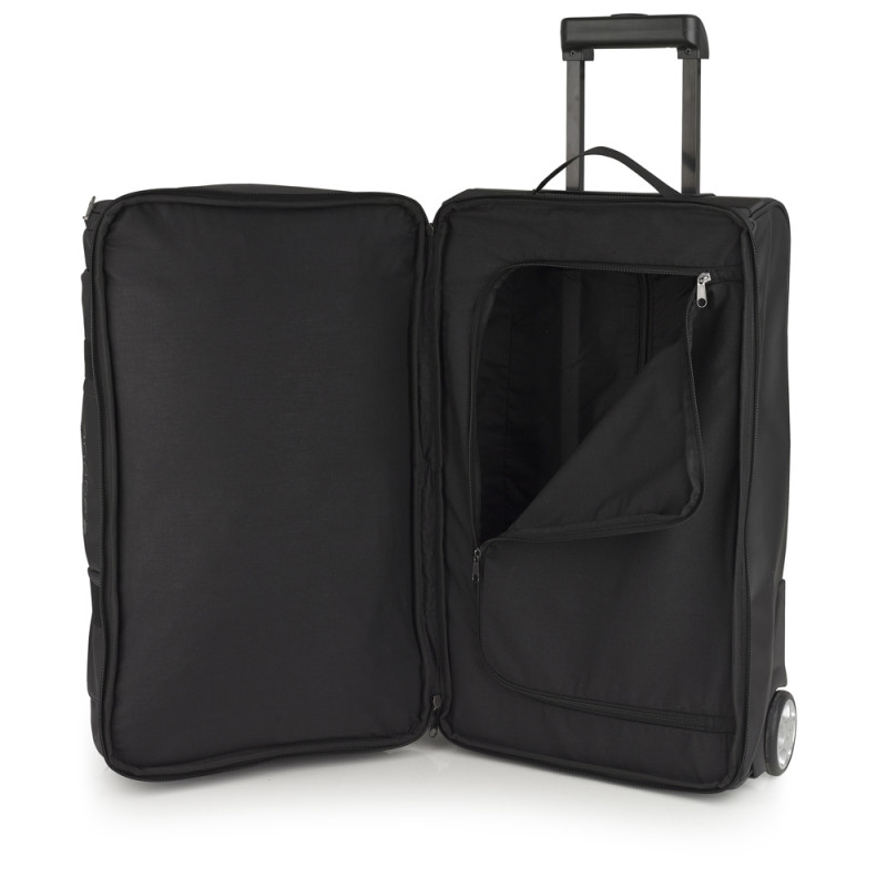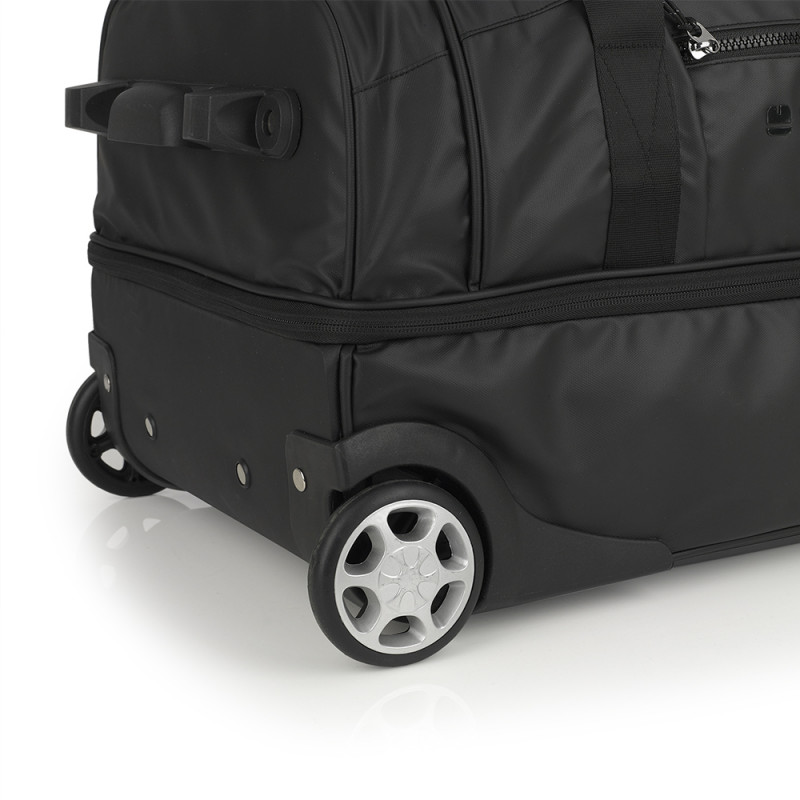 Bolso de ruedas blando, con 2 ruedas, dos departamentos y bolsillo interior. Fabricado en poliéster resinado y piel sintética, compuesto por un forro de alta calidad. Medidas: 55x32x29 cm – Peso: 2,2 kg – Capacidad: 51 L