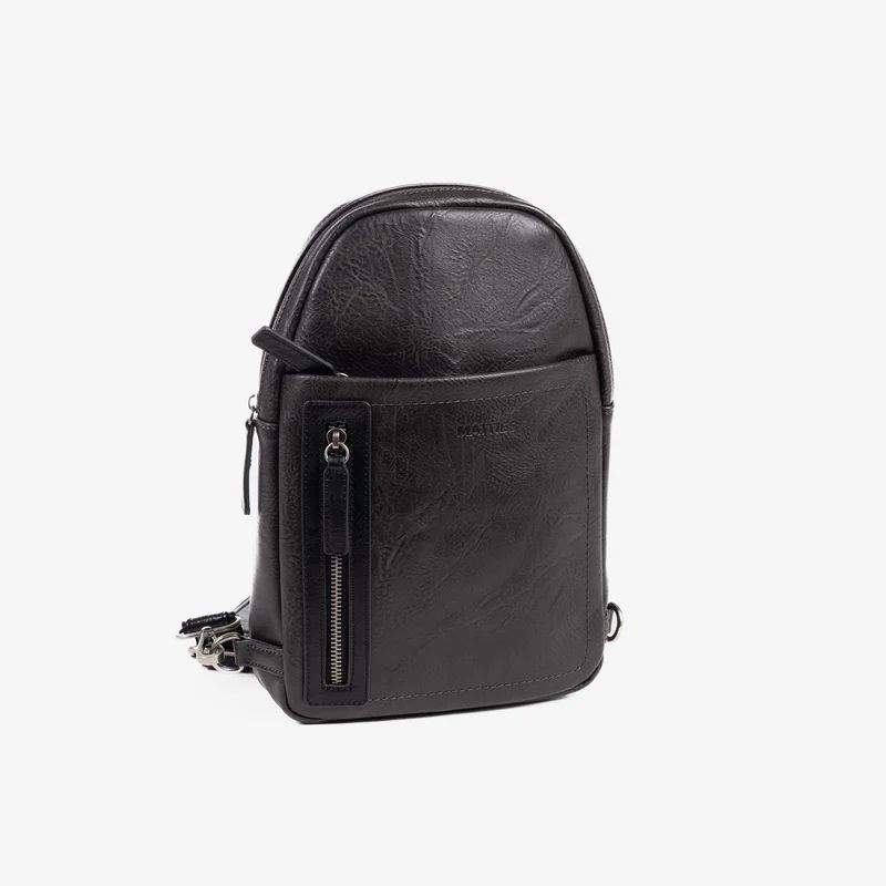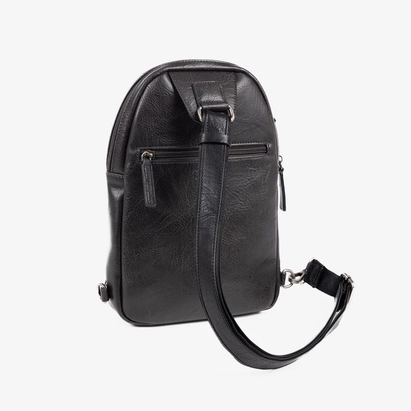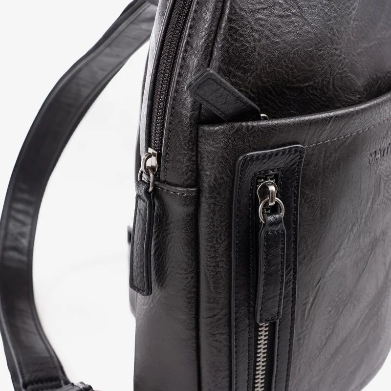 Bolso bandolera fabricado en polipiel de alta calidad, interior de forro textil con un bolsillo cerrado con cremallera. En la parte trasera tiene un bolsillo cerrado con cremallera. El asa bandolera tiene corredera para su fácil ajuste en altura.
