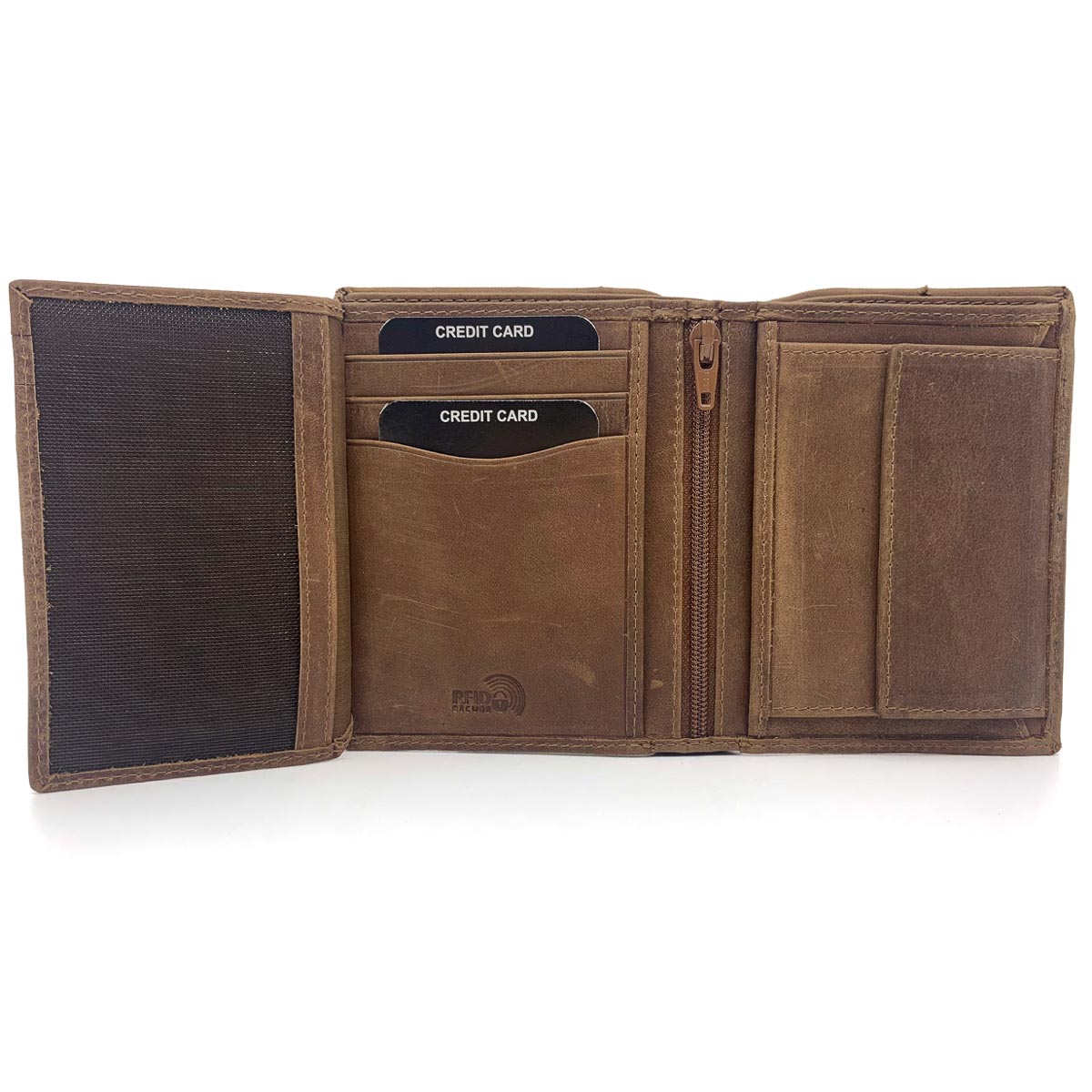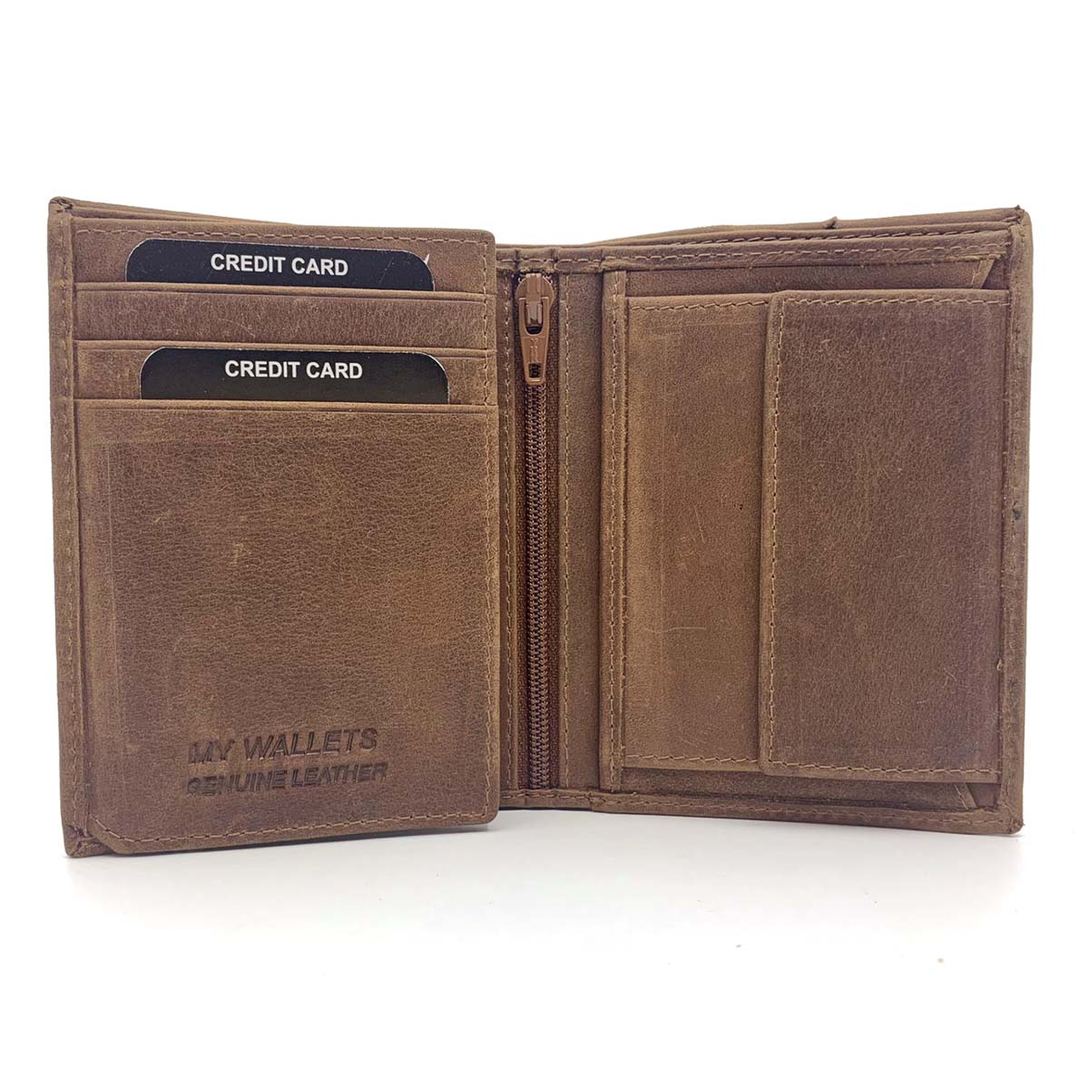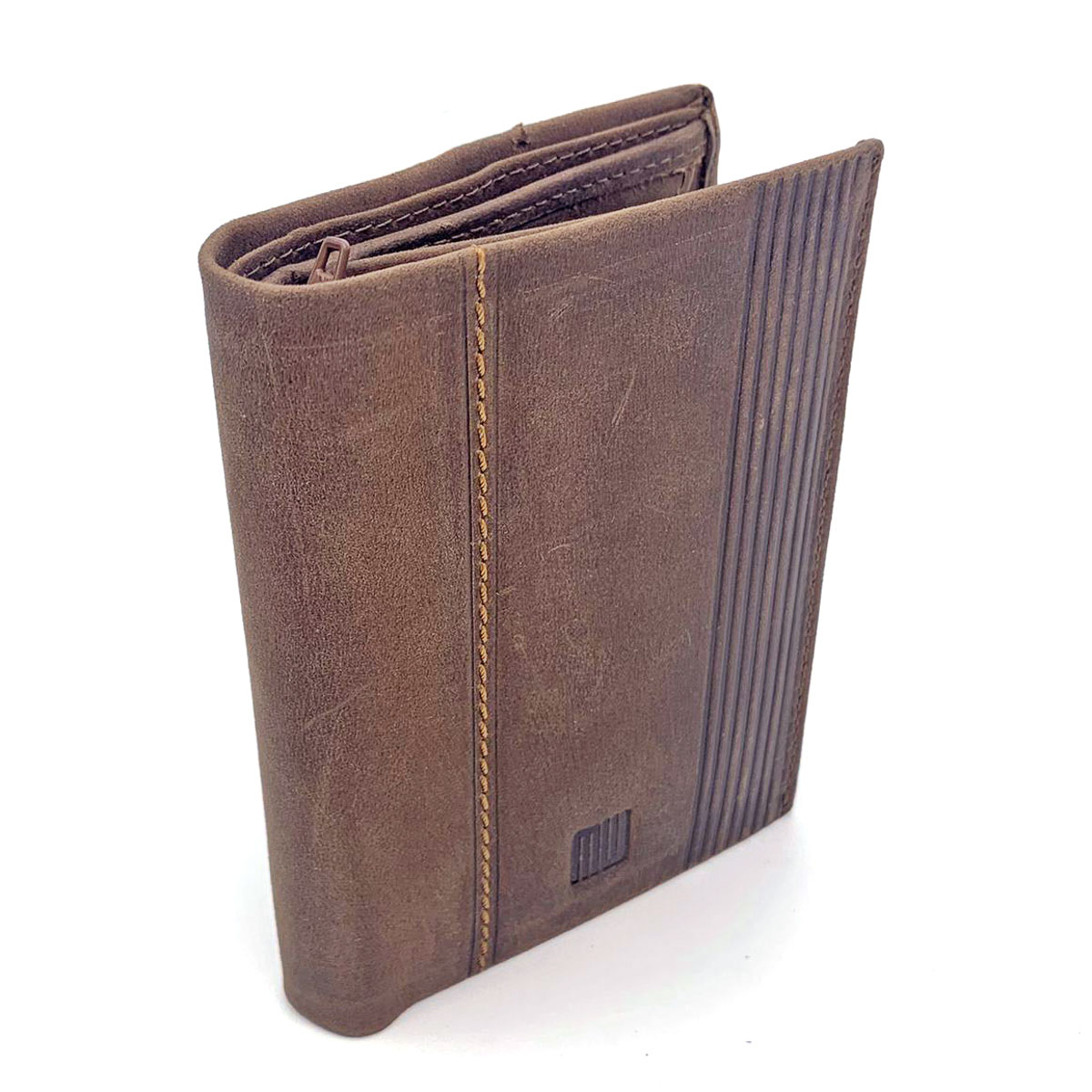 Cartera vertical con monedero para hombre. Confeccionado a mano en piel 100% vacuno. Dimensiones: 9 × 11,5 cm