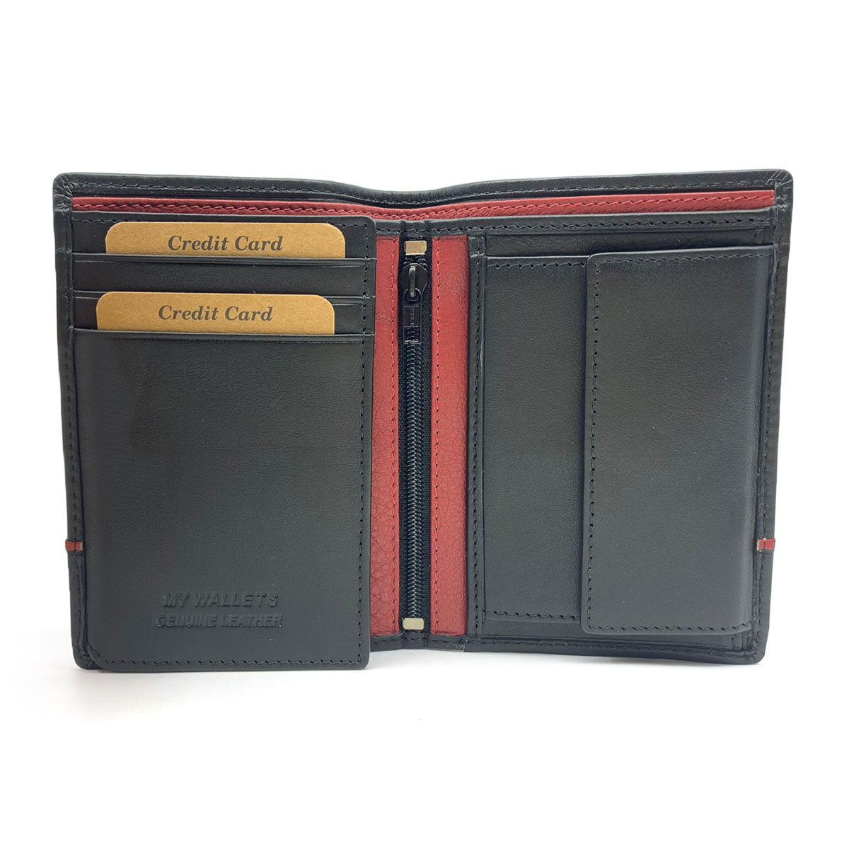 Cartera vertical con monedero para hombre. Confeccionado a mano en piel 100% vacuno. Dimensiones: 9 × 11,5 cm