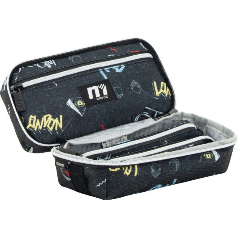 Estuche escolar portatodo de gran capacidad con 2 estuches interiores que pueden extraerse fácilmente mediante un sistema con velcro y un bolsillo con cremallera de gran capacidad.