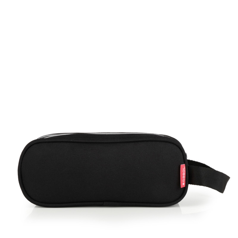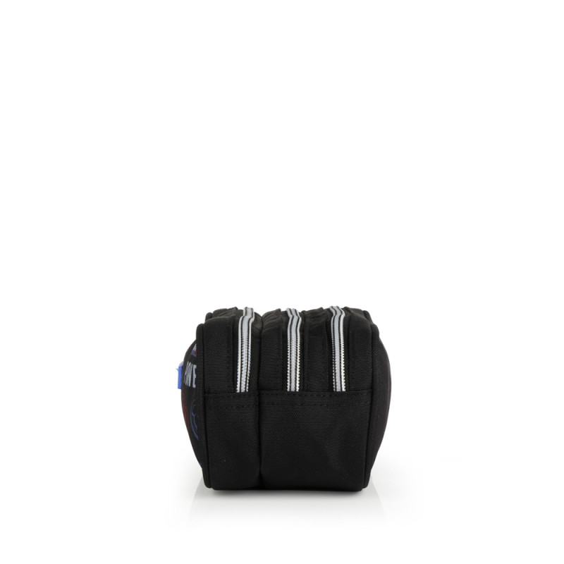 Estuche triple con asa. Fabricado con material libre de PVC. Material impermeable. Medidas: 22x9x9 cm