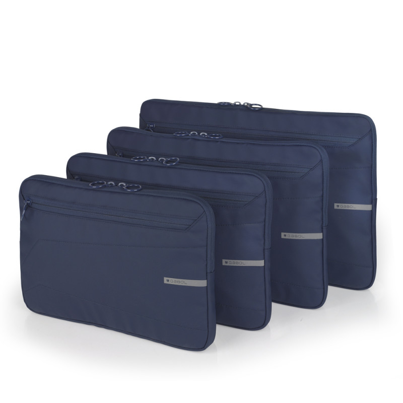 Funda para portátil 14» de poliéster resinado, azul. Incluye forro de alta calidad, acolchado y con organizador para portátil. Fabricado con material libre de plásticos PVC. Medidas: 35x25x2 cm. Volumen: 1,7 L