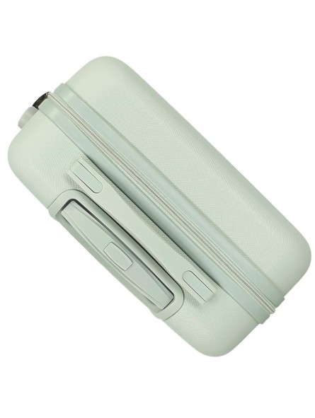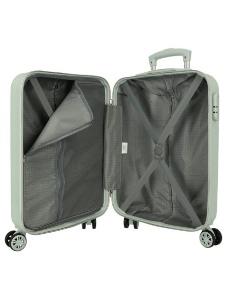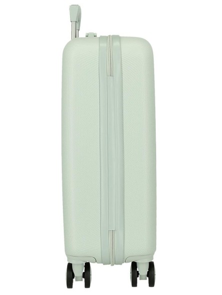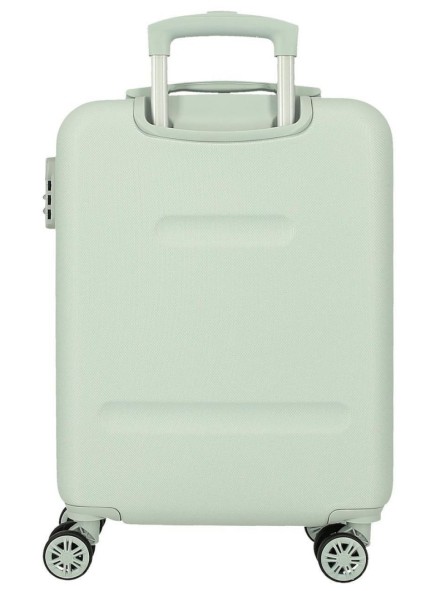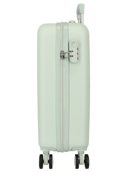 Maleta de cabina de 38x55x20 cm. Tiene una capacidad de 34 litros y pesa 2,35 kg. Fabricada en ABS, un material resistente y ligero. Un compartimento con cremallera y un bolsillo en uno de los lados y gomas elásticas de sujeción en el otro. Cuatro ruedas de giro multidireccional para un fácil desplazamiento. Cierre de combinación lateral para aumentar la seguridad del equipaje.