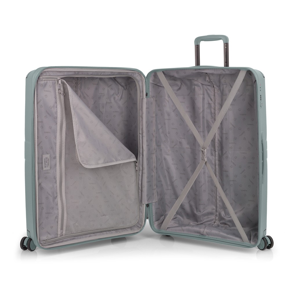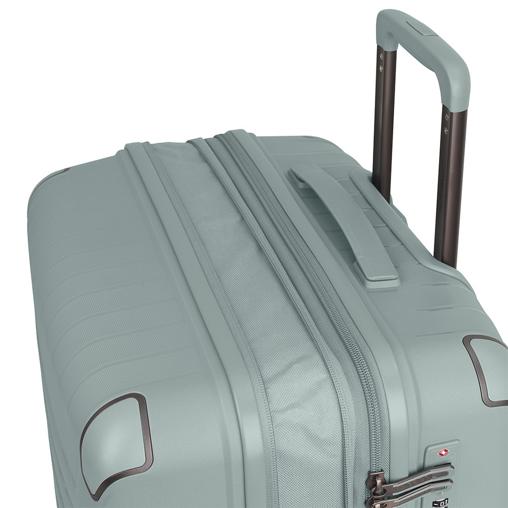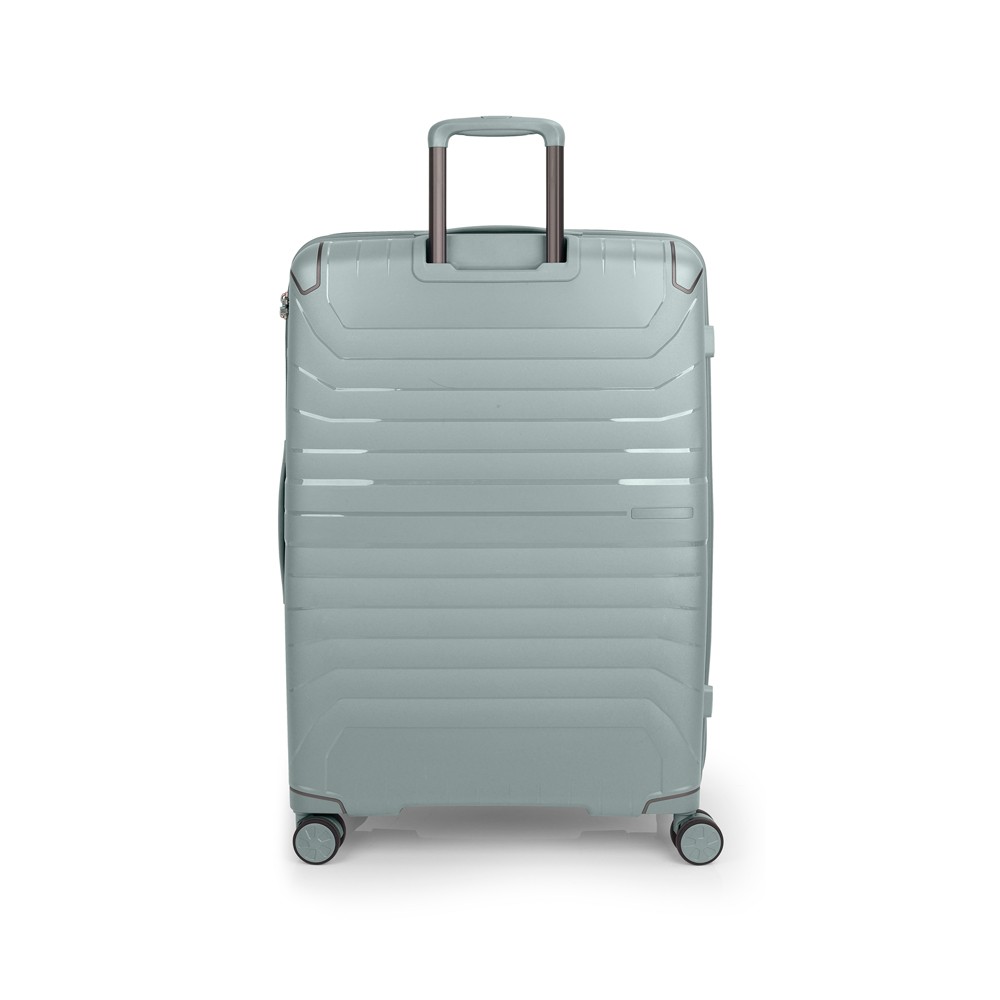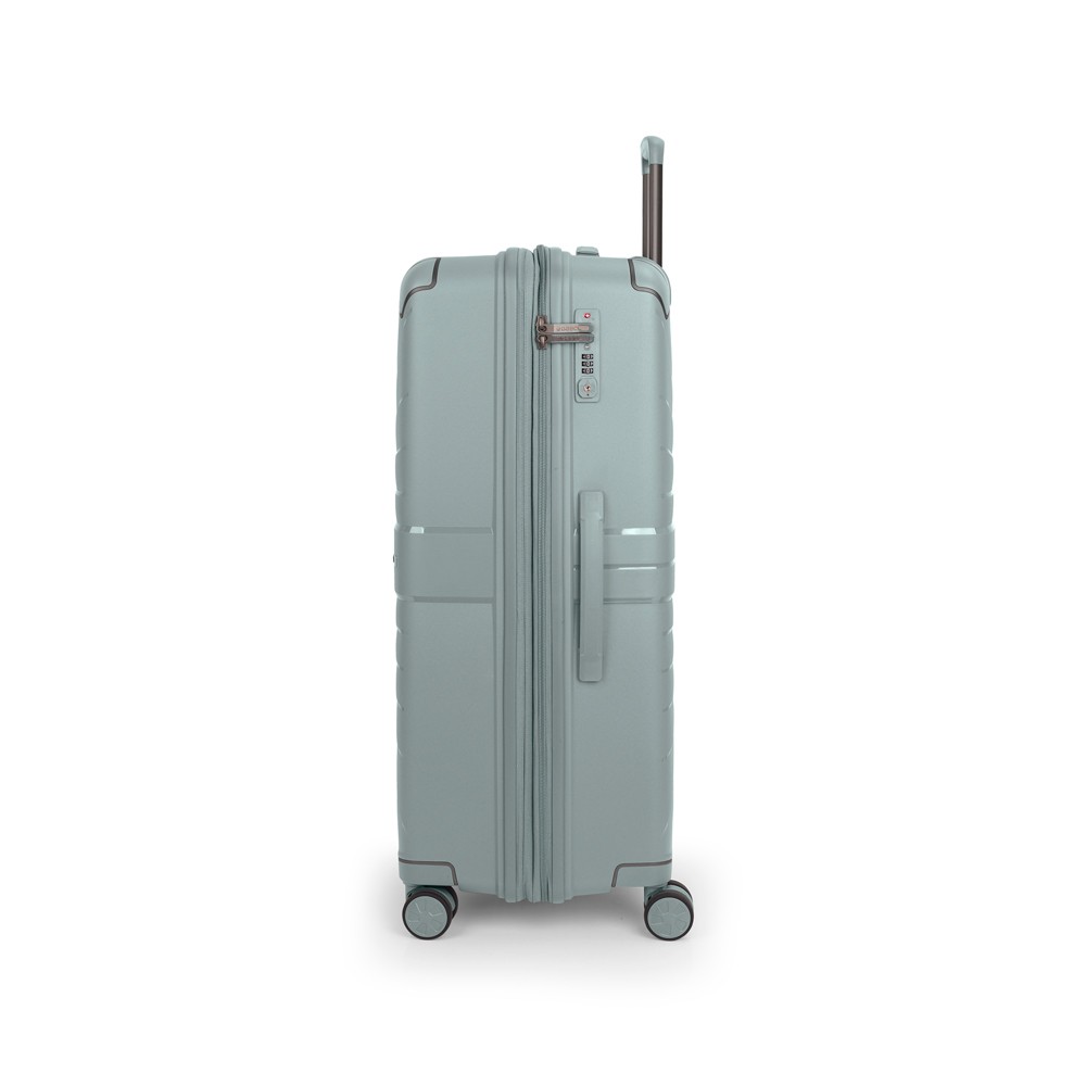 Maleta grande expandible en todos los tamaños. Fabricadas en polipropileno. Su interior esta compuesto por un forro de material reciclado, con un separador y un bolsillo. Cuenta con 4 ruedas dobles multidirección y cerradura TSA. Medidas sin y con expandible: Maleta grande: 51x76x30/33 cm – Peso: 4,4 kg – Capacidad: 105,3/115,8 L.