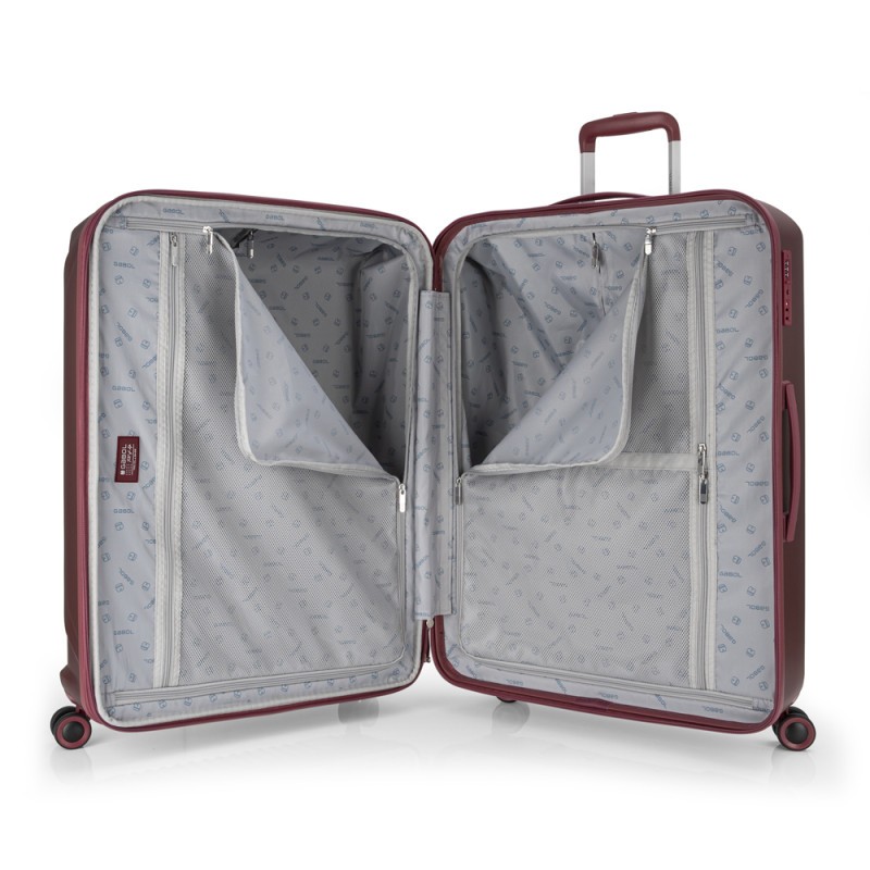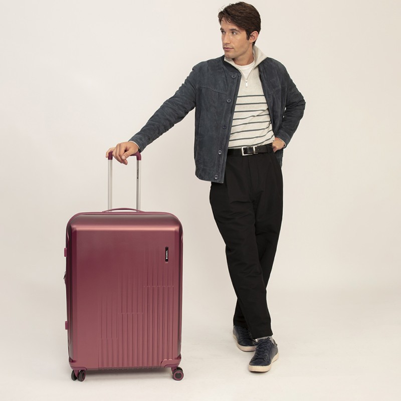 Para viajes largos o grandes aventuras, la maleta grande KAI de Gabol te ofrece espacio, resistencia y elegancia. Fabricada en Policarbonato, soporta los impactos del viaje sin perder estilo. Su interior está completamente forrado con material reciclado RPET y equipado con prácticos separadores y cintas de sujeción. La cerradura TSA y la cremallera de seguridad mantienen todo protegido. Sus 4 ruedas dobles multidireccionales permiten un manejo cómodo y suave. Maleta Grande: 52 x 76 x 32/35 cm | Capacidad: 112,6/123,1L | Peso: 4,8 kg.