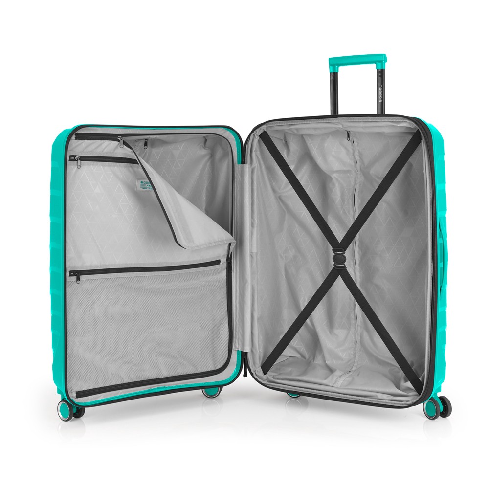 Para viajes largos o grandes aventuras, la maleta grande SOHO de Gabol te ofrece espacio, resistencia y elegancia. Fabricada en Polipropileno, soporta los impactos del viaje sin perder estilo. Su interior está completamente forrado con material reciclado RPET y equipado con prácticos separadores y cintas de sujeción. La cerradura TSA y la cremallera de seguridad mantienen todo protegido. Sus 4 ruedas dobles multidireccionales permiten un manejo cómodo y suave. Medidas: 53 x 77 x 22 cm | Capacidad: 110,6 /121,3L | Peso: 4,5 kg.