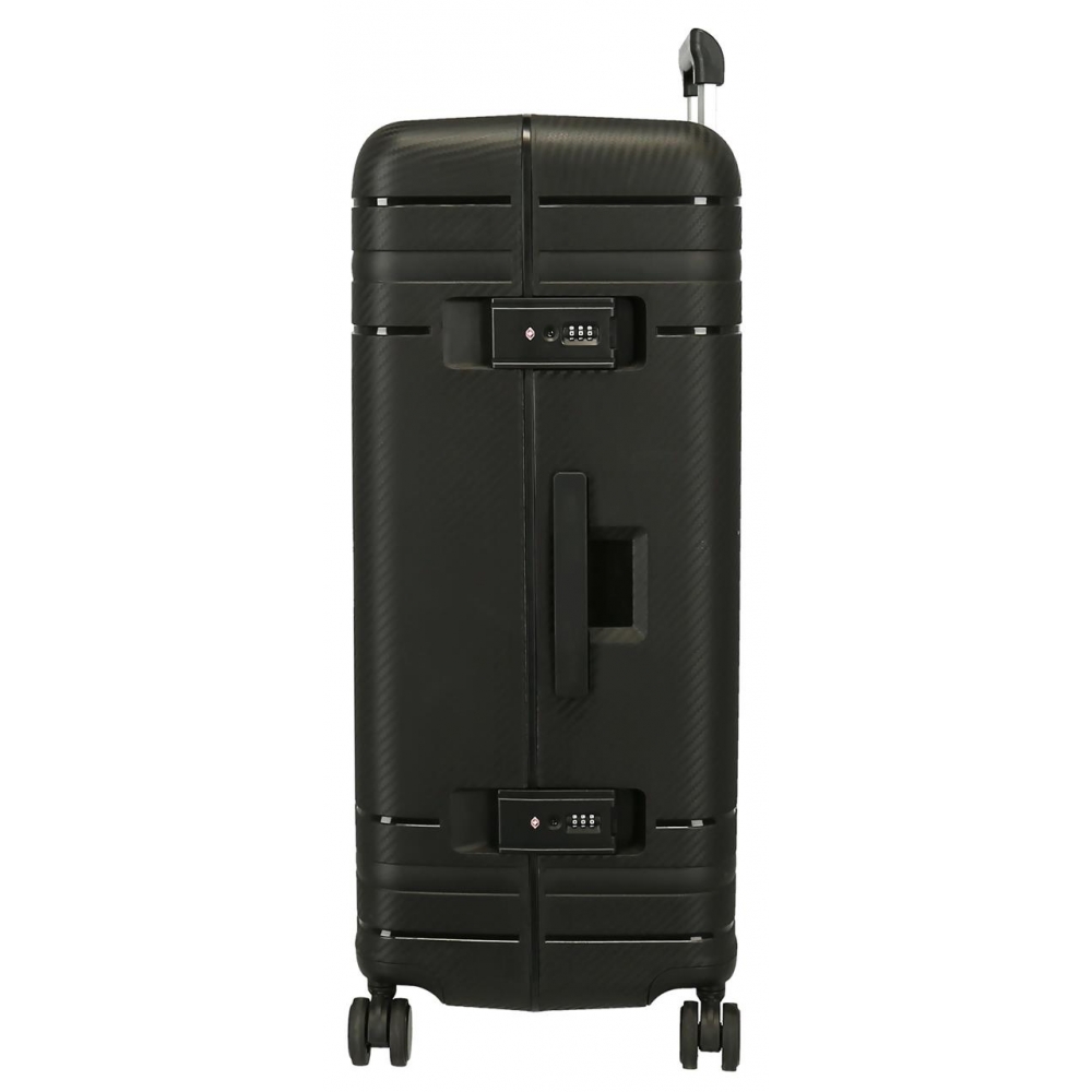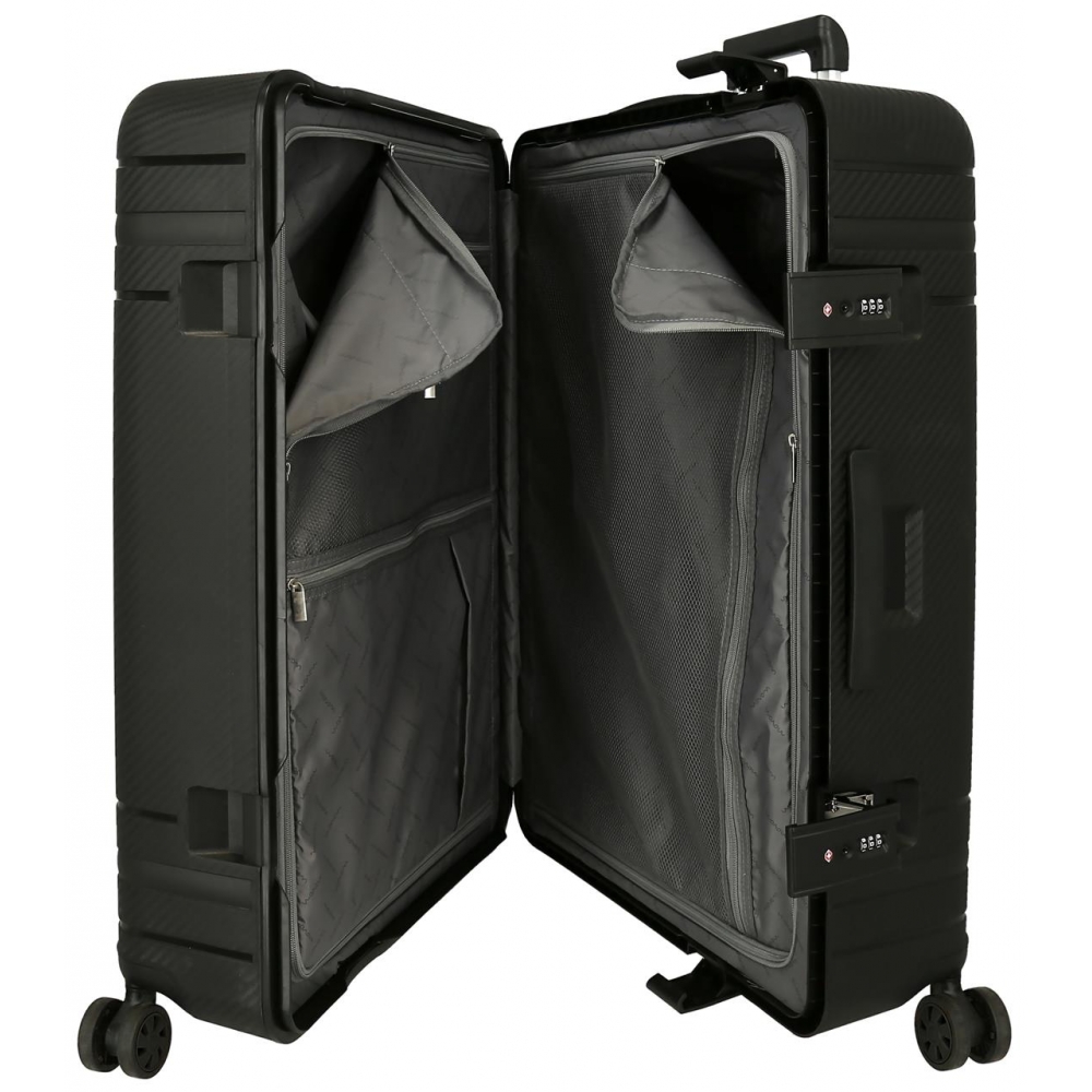 Ruedas dobles que permiten un desplazamiento cómodo, un rodaje suave y una maniobrabilidad sin esfuerzo. Cierre Cierre TSA para viajar seguro a cualquier parte del mundo y proteger tus efectos personales. Interior Compartimentos cerrados con cremallera a ambos lados y tres bolsillos con cremallera de distintos tamaños. Material: Polipropileno Medidas: 66 x 44 x 27cm. Medidas Interior: 61 x 41 x 25cm Peso: 4.4Kg. Capacidad: 67L.
