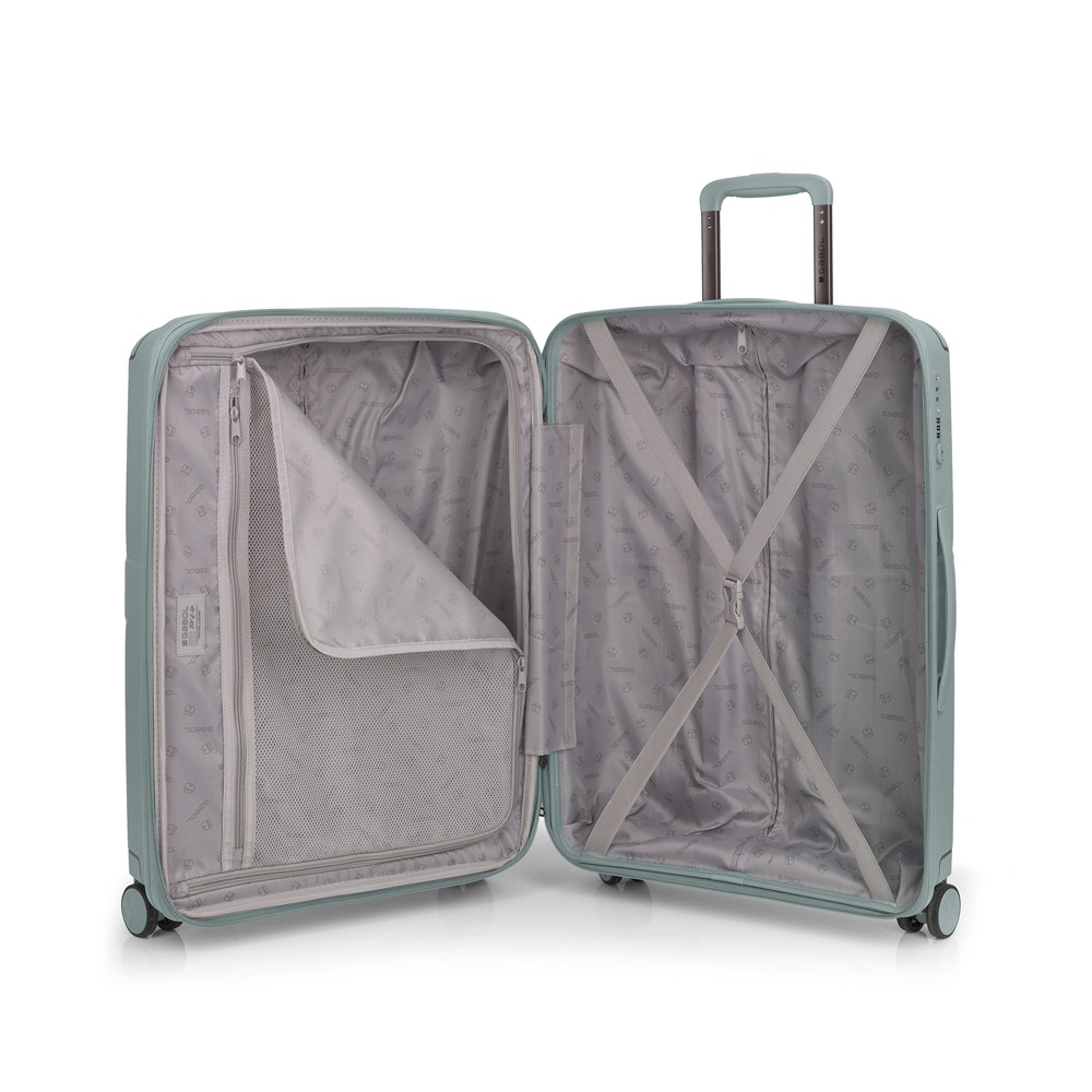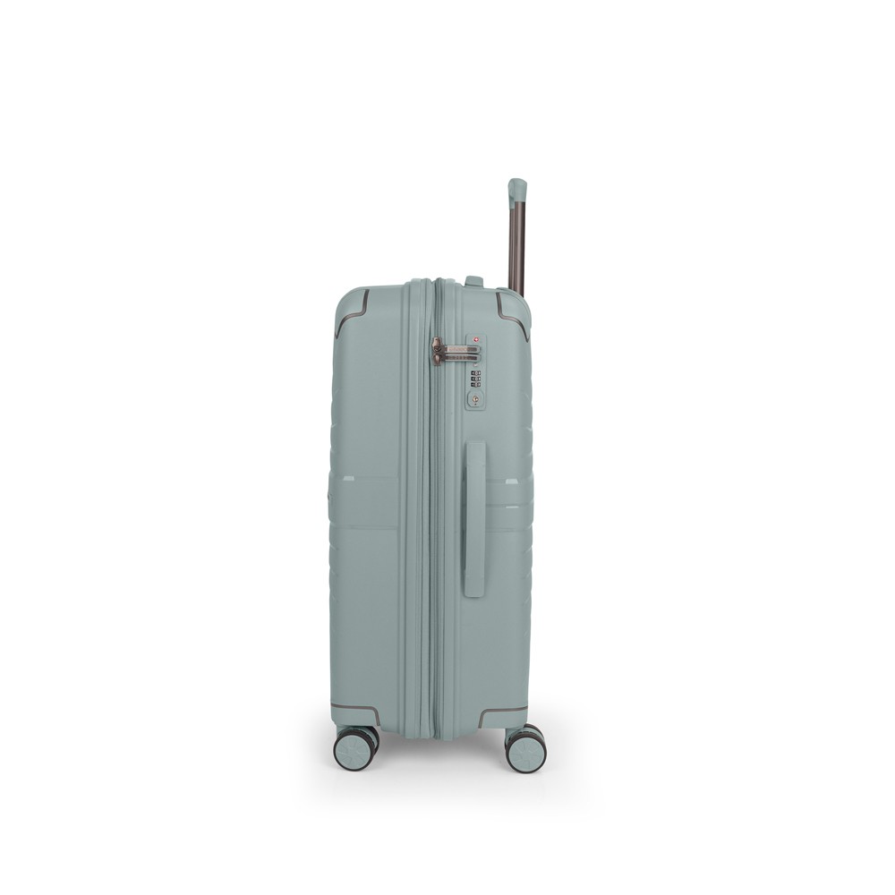 Maleta mediana expandible en todos los tamaños. Fabricadas en polipropileno. Su interior esta compuesto por un forro de material reciclado, con un separador y un bolsillo. Cuenta con 4 ruedas dobles multidireccional y cerradura TSA. Medidas sin y con expandible: Maleta mediana: 45x65x27/30 cm – Peso: 3,7 kg – Capacidad: 70/77,9 L.