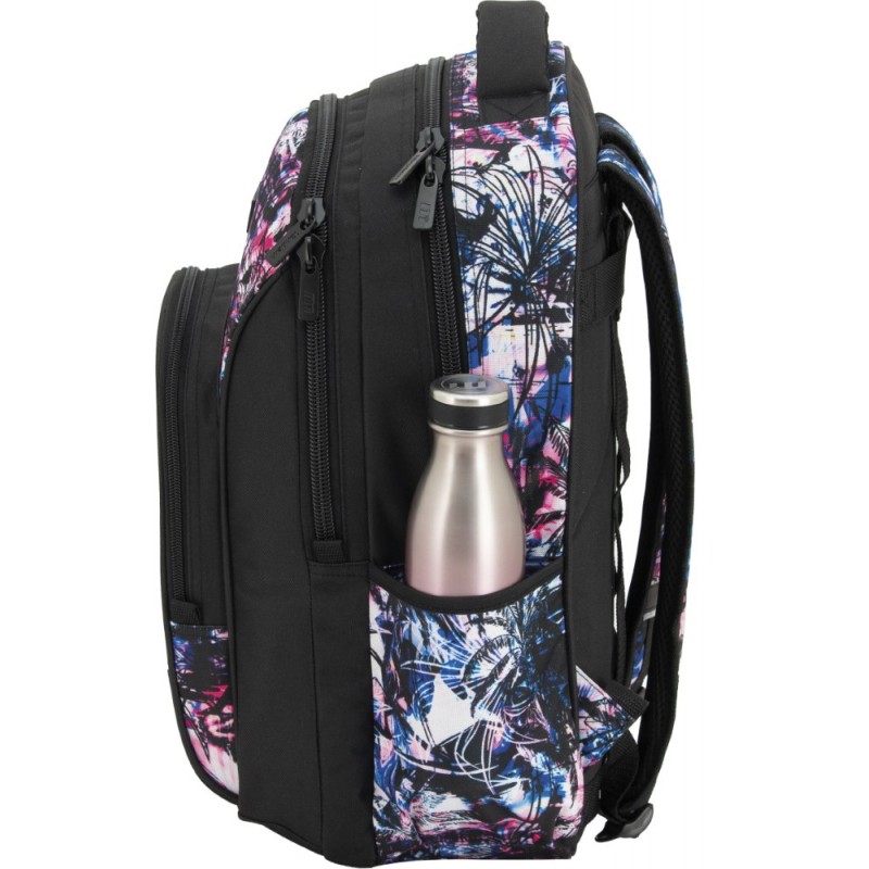 Mochila escolar doble cuerpo. Con dos compartimientos de gran capacidad y apertura con cremallera. El comportamiento principal tiene un bolsillo interior acolchado para contener laptops o tablets.Bolsillo frontal con organizador para bolígrafos y útiles escolares pequeños. Bolsillo en la lateral derecha para transportar botellas. Adaptable a carro gracias a sus correos horizontales en su parte posterior. Espalda y tirantes ergonómicos con acolchado extra y material transpirable.
