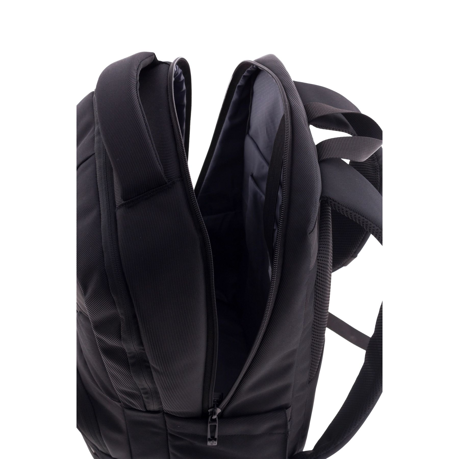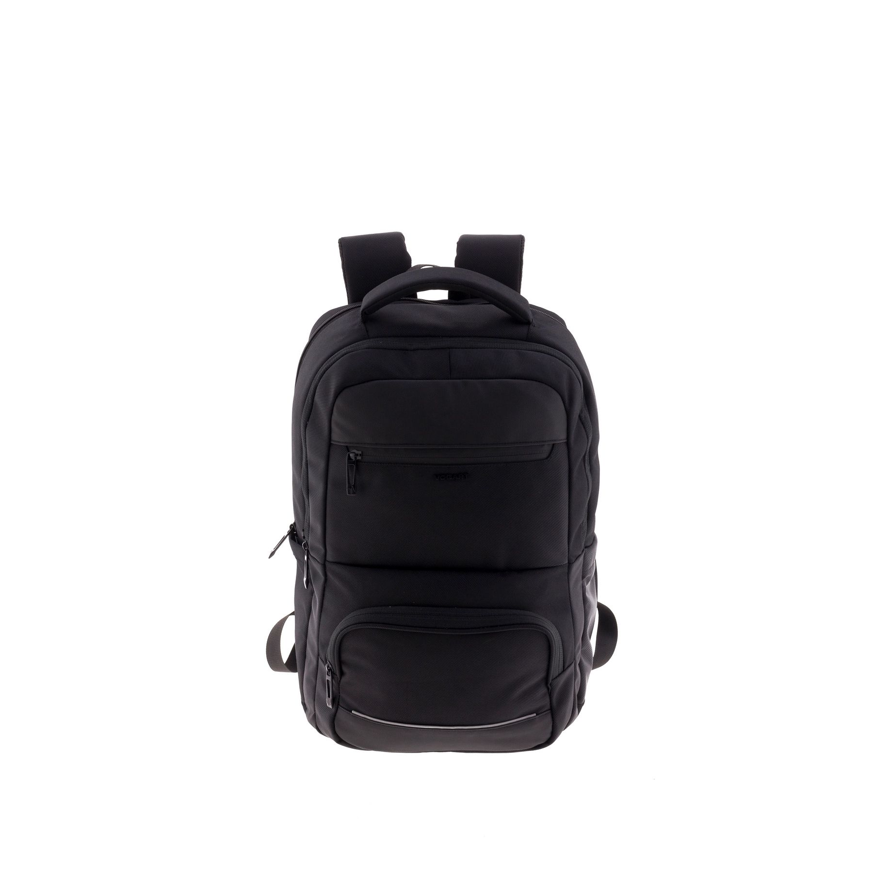 Colección business de material resistente. Múltiples bolsillos interiores y exteriores, llavero y compartimento para portátil. Sistema de seguridad de cremallera autobloqueante. Mochila tamaño grande para portátil 17″. Fabricada en material polyester. Estructura más armada y antirrobo. Cremallera autobloqueante. Compartimento para tablet. Asa superior. Bolsillos laterales. Asas acolchadas. Bolsillo en la parte trasera. Cinta posterior para acoplar a la maleta. Organizador interior. Cremallera invertida. Detalles reflectantes para visibilidad nocturna.
