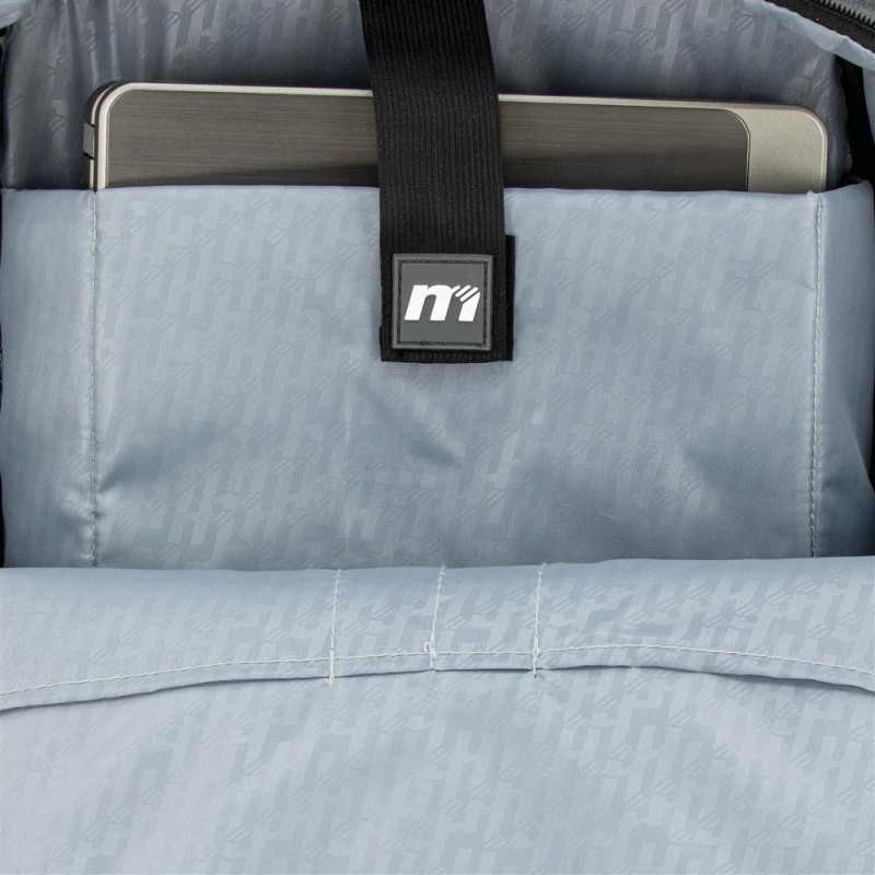 Mochila con un bolsillo principal de gran capacidad y dos frontales. Departamento interior para portátil. Espalda acolchada Bolsillo para botella. Organizadores internos Tirantes ergonómicos acolchados con material transpirable. Vivos reflectantes.