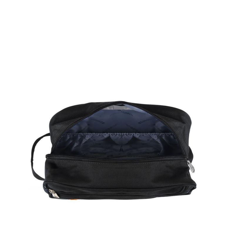 Neceser blando fabricado con material de plástico reciclado. Interior forrado y con varios bolsillos. PESO 0.18 kilos MEDIDAS 28x18x12