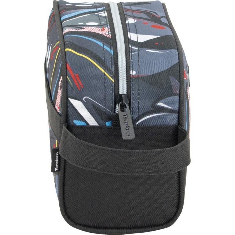 Neceser con un compartimento grande de apertura superior con cremallera, forrado con material isotermo en el interior. Dispone de dos asas: Una ubicada en un lateral facilitando el agarre y la otra es una banda trasera, la cual permite adaptarse a las barras de un carro de mochila o de maleta. No ocupa mucho espacio dentro de una mochila, bolso o maleta.