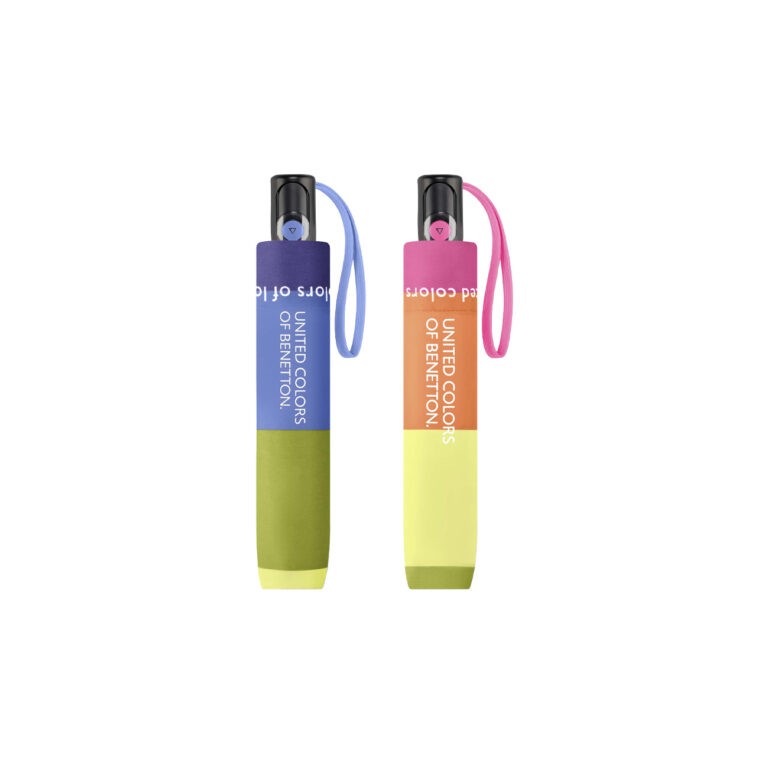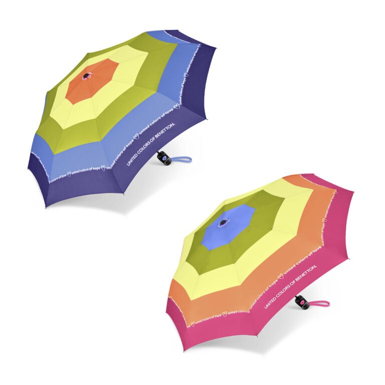 Paraguas plegable con apertura automática. Un paraguas ligero de alta calidad que forma parte de la nueva colección Benetton . Es un paraguas antiviento gracias a las varillas de fibra de vidrio. Tiene un  tejido pongee de calidad, extra resistente al agua. Este modelo está disponible en plegable  manual y largo.