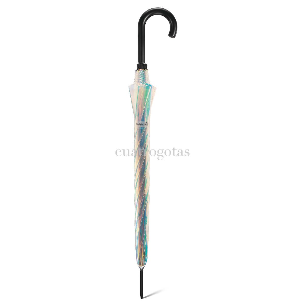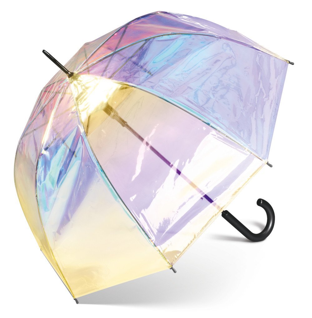 Paraguas de la colección Cuatrogotas largo transparente, forma de cúpula, con efecto iridiscente.