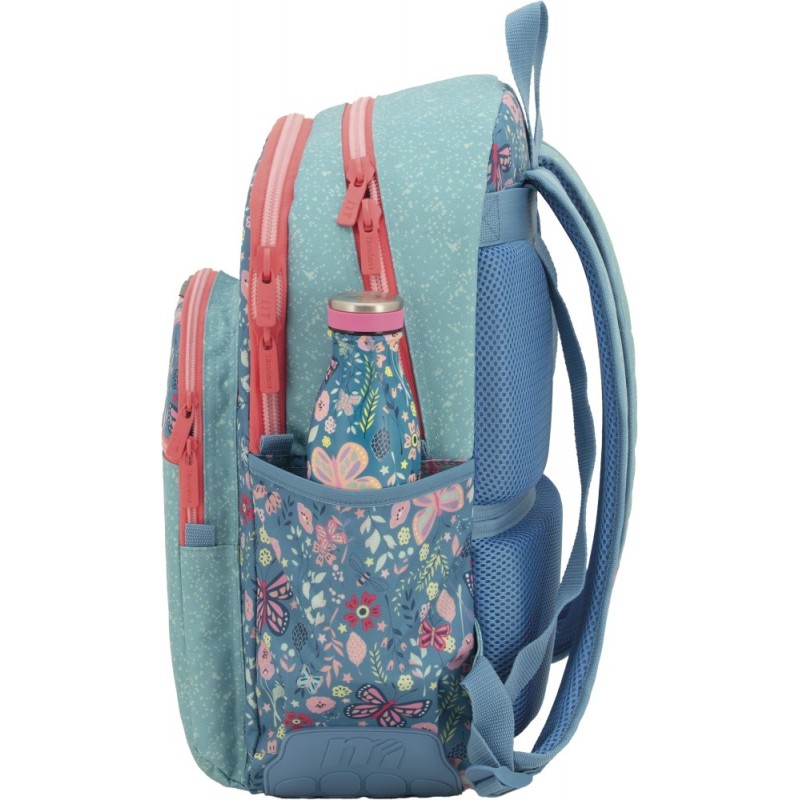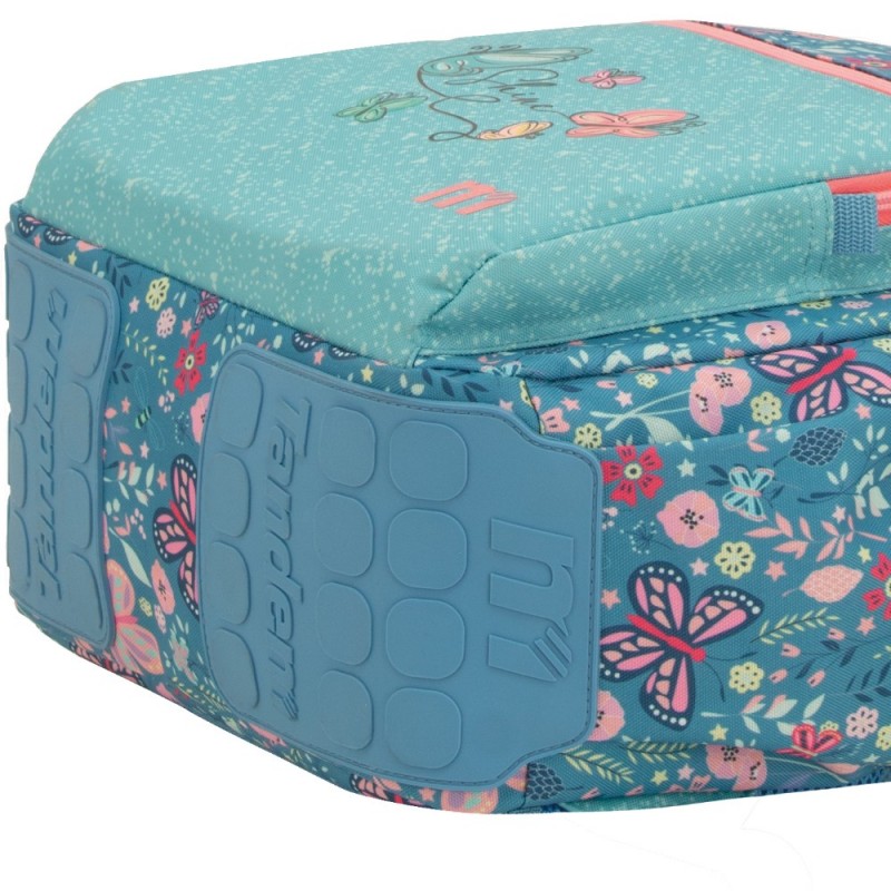 Mochila con refuerzo extra en la base gracias a sus cantoneras de PVC personalizadas con la colección.
