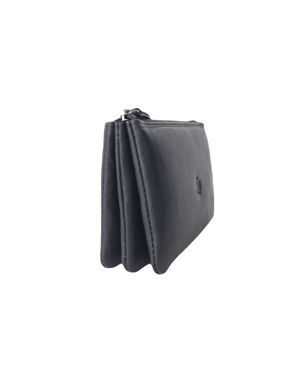 Monedero de piel unisex que cierra con una cremallera. Tiene en el interior 5 departamentos y 2 ranuras para tarjetas. Medidas 9 x 14 cm.