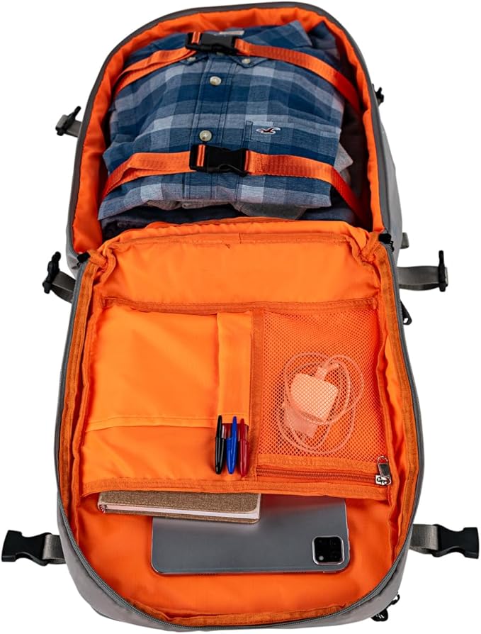 Ideal como Mochila De Viaje Cabina, cumple con las medidas de aerolíneas como Ryanair; permite llevar tus objetos personales organizados, accediendo fácilmente durante el vuelo.