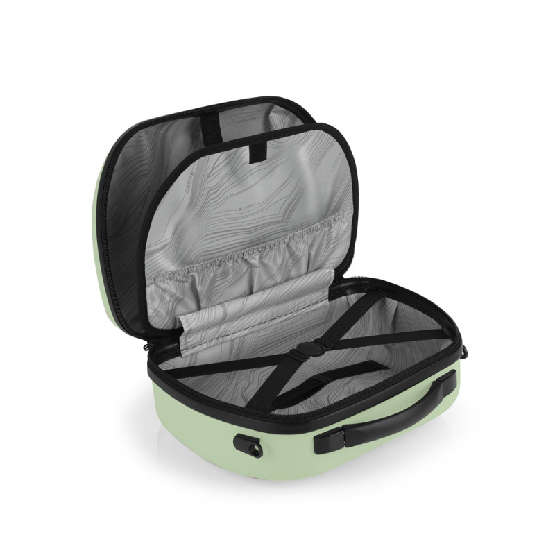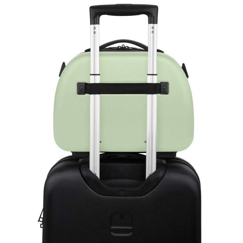 Neceser rígido de ABS con acople a maleta y correa. Interior forrado y con clasificador. Medidas: 28x35x18 cm – Peso: 0,9Kg – Capacidad: 12 L.