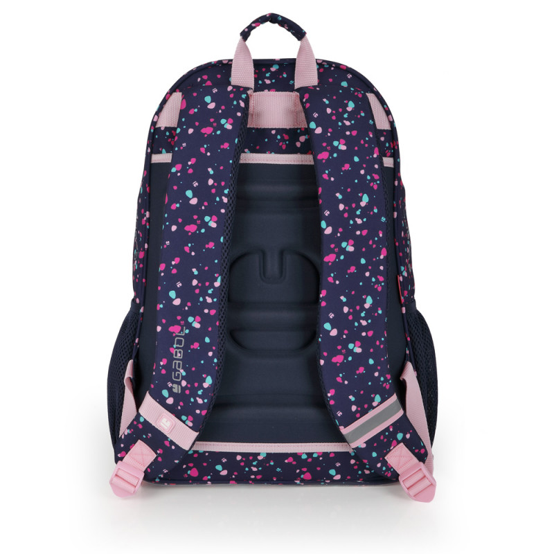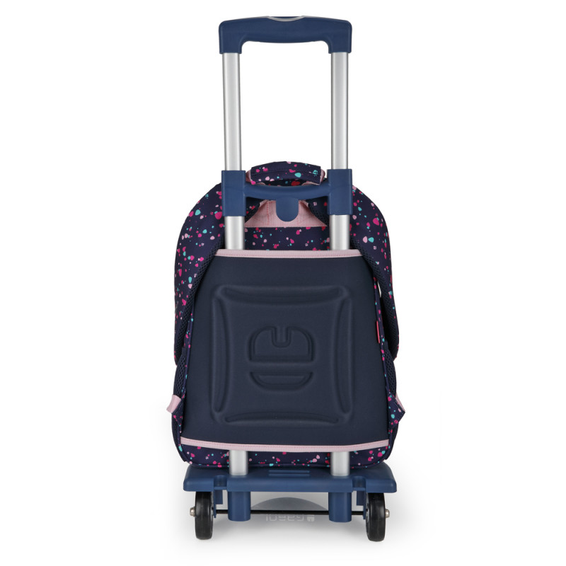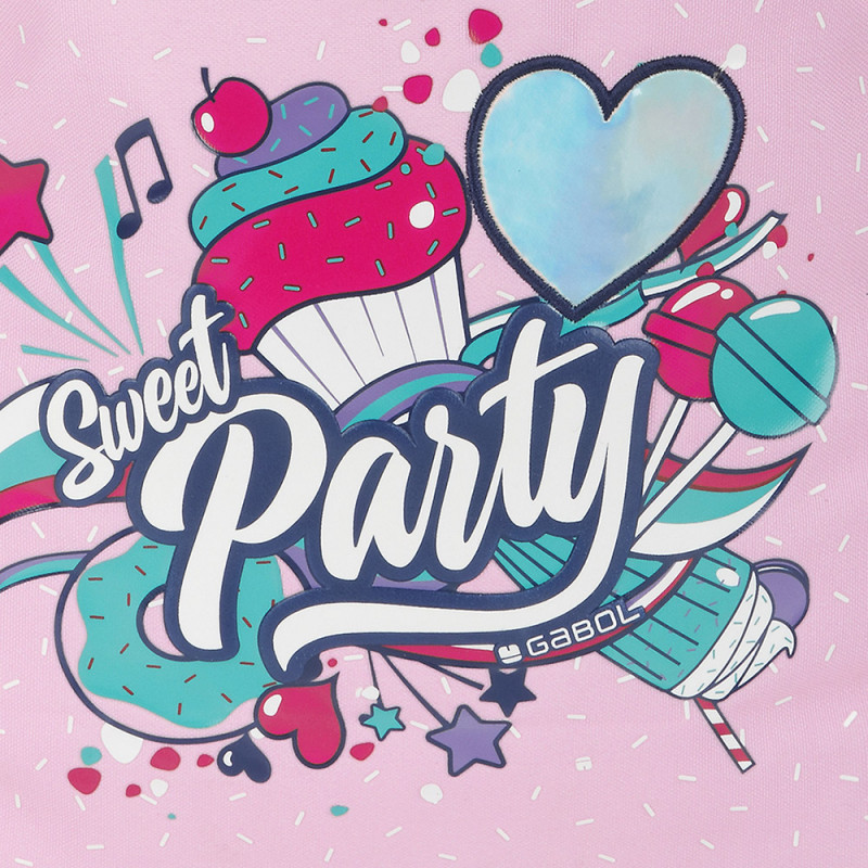 Mochila adaptable a carro Gabol PARTY. Mochila adaptable a carro con 2 compartimentos. Espalda acolchada para servir de amortiguación con el contenido. Protección añadida en las cremalleras. Base acolchada con protector de plástico de refuerzo. Hombreras acolchadas y reforzadas. Incluye identificador y organizador en su interior. Bolsillo en el lateral exterior. Material resistente al agua. Fabricada con material libre de PVC, con un tejido de alta densidad y mayor calidad. Medidas: 34x46x20 cm