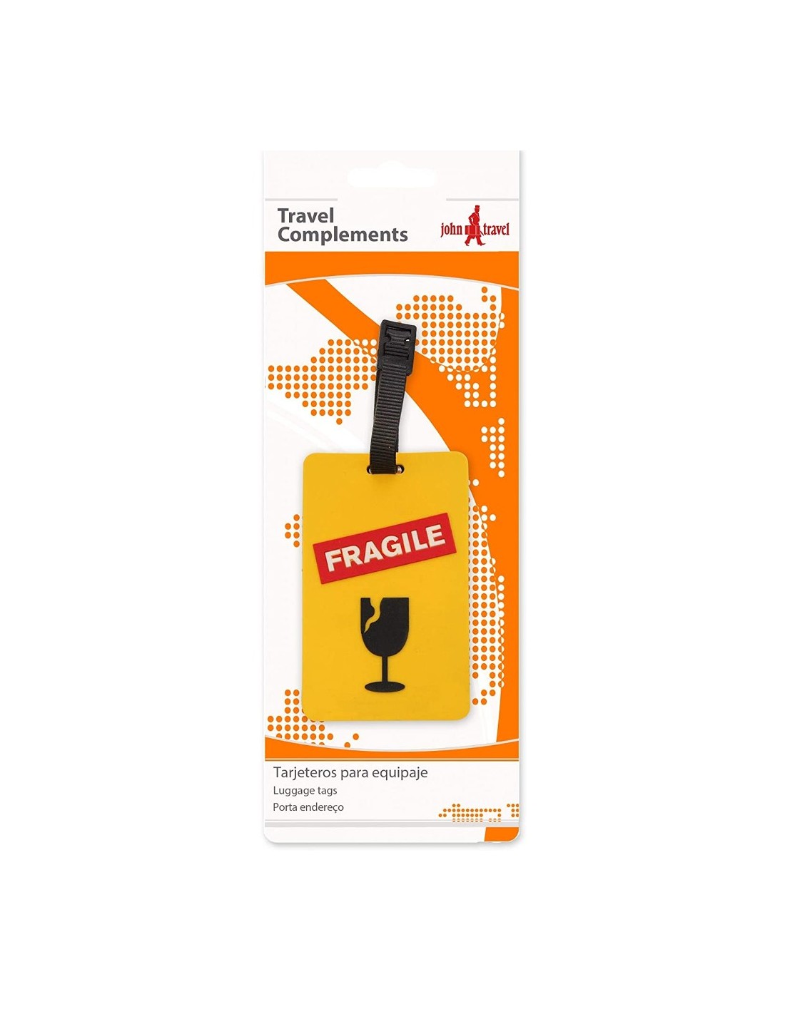 Tarjetero identificador para maletas. Blando. Fabricado en goma. Ligero, 150 gramos. Amarillo. Medidas: 15 x 10 x 5 cm.